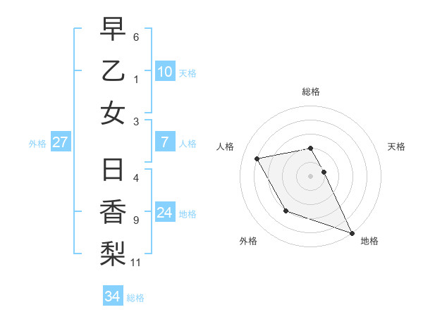 早乙女 日香梨さんを姓名の画数から五運を鑑定