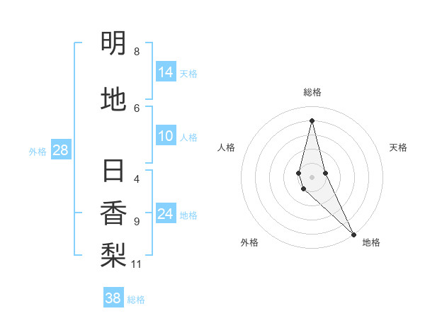 明地 日香梨さんを姓名の画数から五運を鑑定