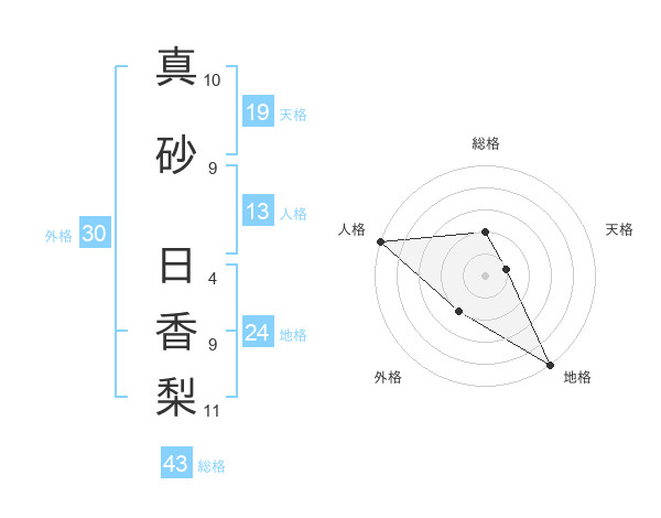 真砂 日香梨さんの外格は30画の2点!