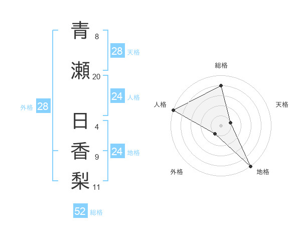 青瀬 日香梨さんを姓名の画数から五運を鑑定