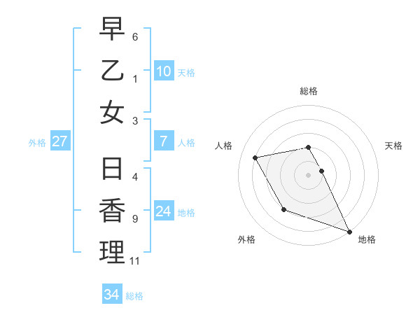 早乙女 日香理さんを姓名の画数から五運を鑑定