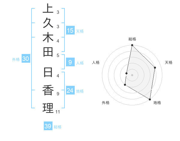 上久木田 日香理さんの天格は15画の4点!