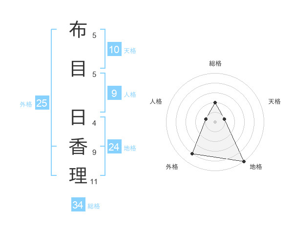 布目 日香理さんの総格は34画の2点!