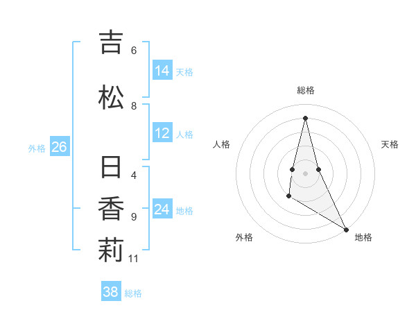 吉松 日香莉さんの総格は38画の4点!