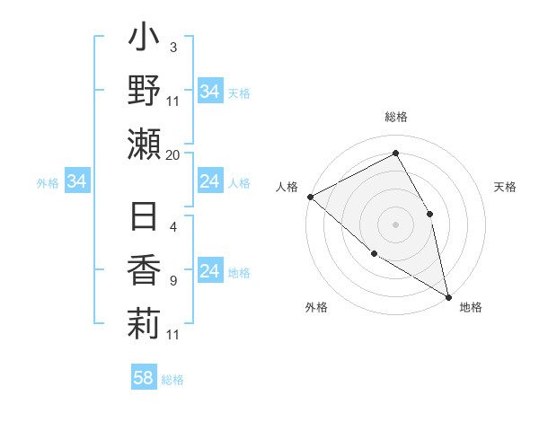 小野瀬 日香莉さんを姓名の画数から五運を鑑定