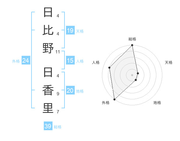 日比野 日香里さんを姓名の画数から五運を鑑定