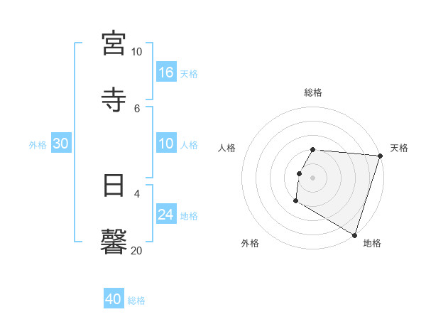 宮寺 日馨さんの天格は16画の5点!