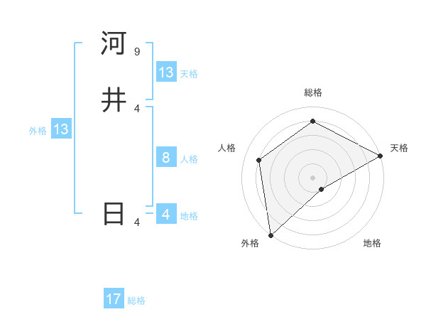 河井 日さんの天格は13画の5点!