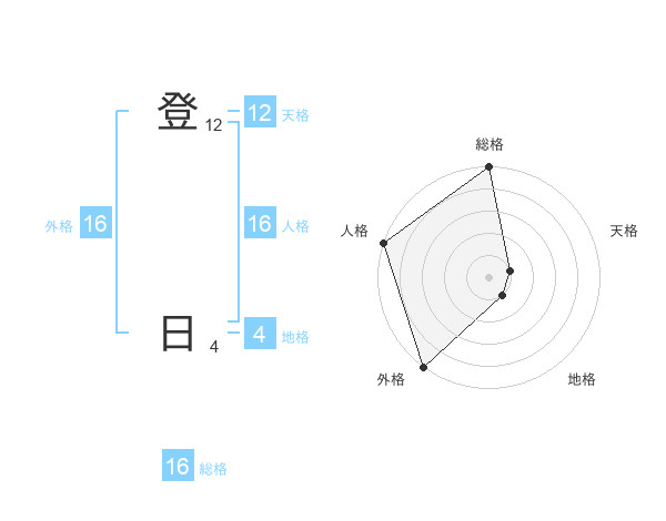 登 日さんの外格は16画の5点!