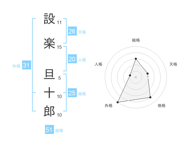 設楽 旦十郎さんの総格は51画の3点!