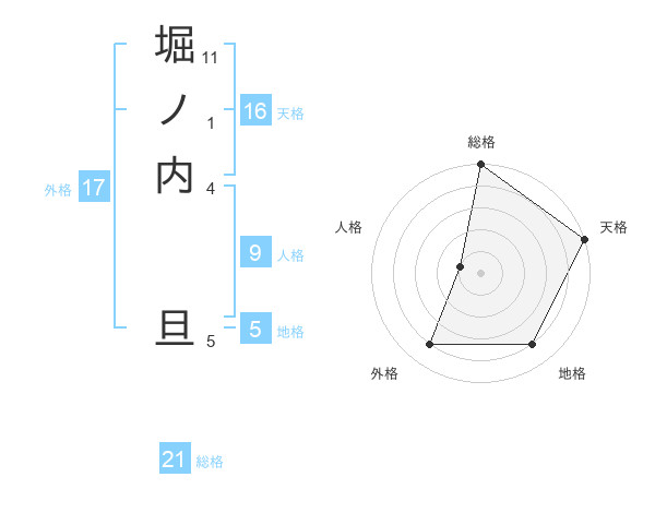 堀ノ内 旦さんの総格は21画の5点!