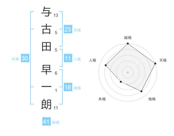 与古田 早一朗さんの総格は41画の5点!