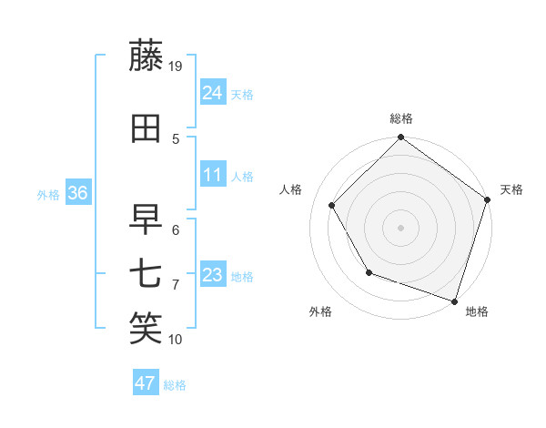 藤田 早七笑さんを姓名の画数から五運を鑑定