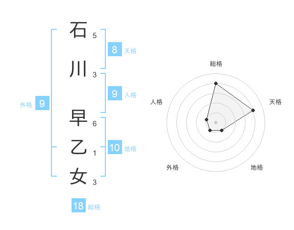 石川 早乙女さんを姓名の画数から五運を鑑定