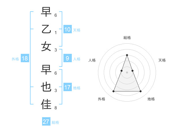 早乙女 早也佳さんを姓名の画数から五運を鑑定
