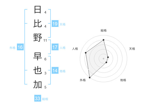 日比野 早也加さんを姓名の画数から五運を鑑定