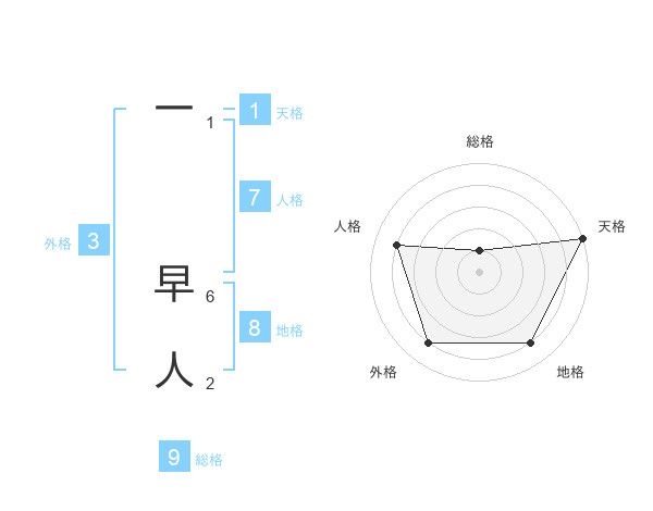 一 早人さんの総格は9画の1点!