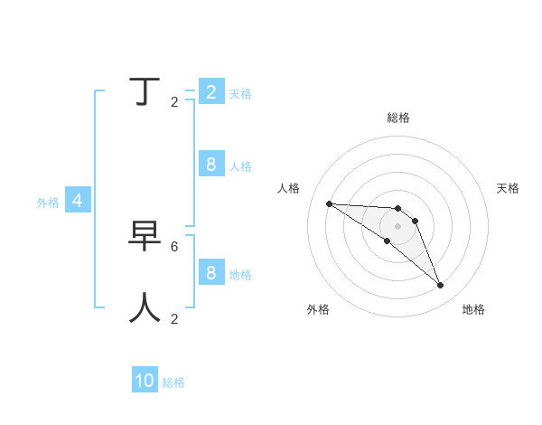 丁 早人さんの地格は8画の4点!