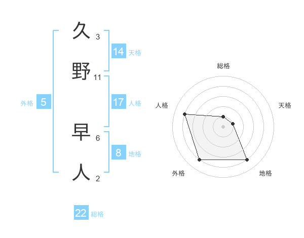 久野 早人さんを姓名の画数から五運を鑑定