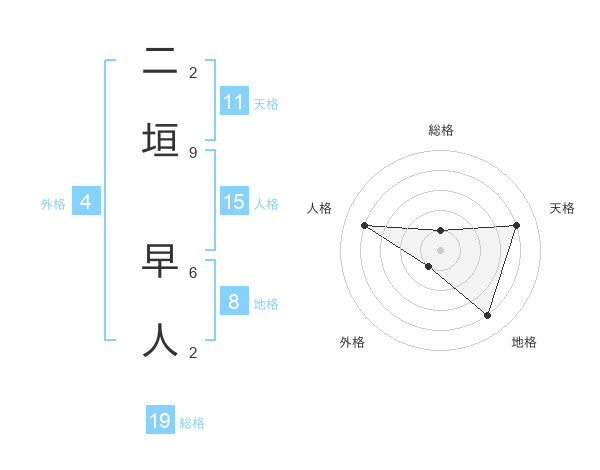 二垣 早人さんの地格は8画の4点!