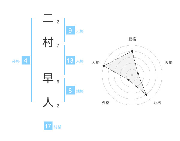 二村 早人さんの総格は17画の4点