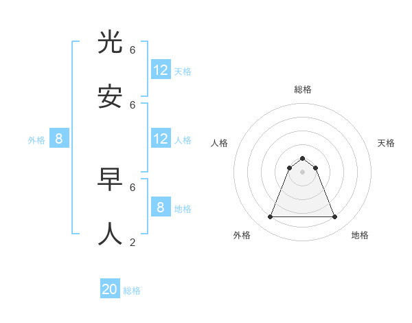 光安 早人さんの総格は20画の1点!