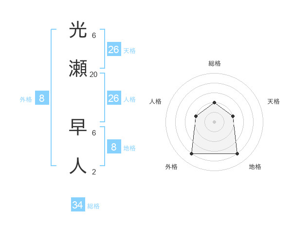 光瀬 早人さんの天格は26画の2点!