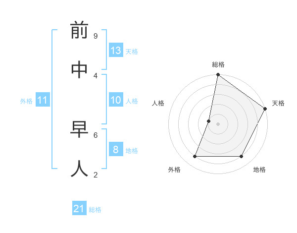 性格や才能などを表す2番目に重要な運勢です。人間関係や協調性、社会的な成功に影響します。主に20歳から50歳ぐらいまでの中年期の運勢を表します。