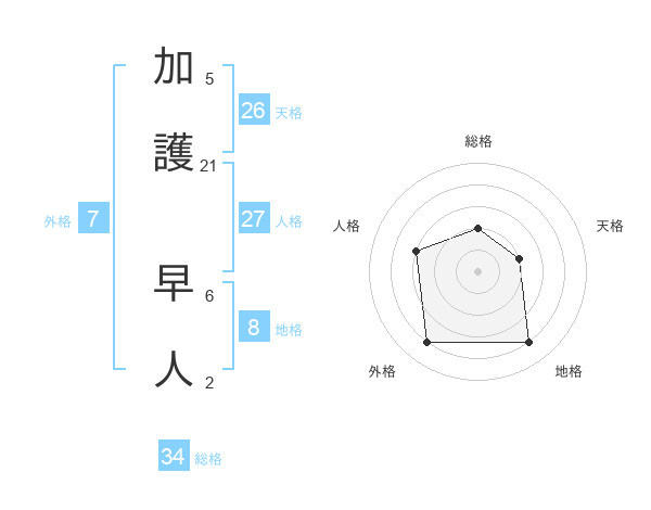 加護 早人さんを姓名の画数から五運を鑑定