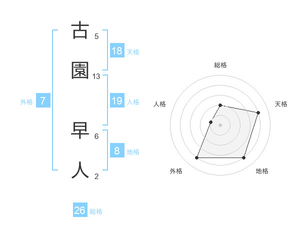 古園 早人さんの総格は26画の2点!