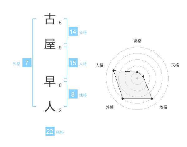 古屋 早人さんの総格は22画の1点!