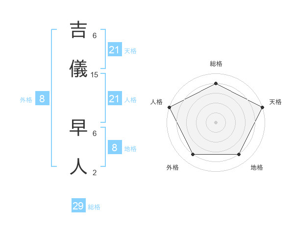 吉儀 早人さんの天格は21画の5点!