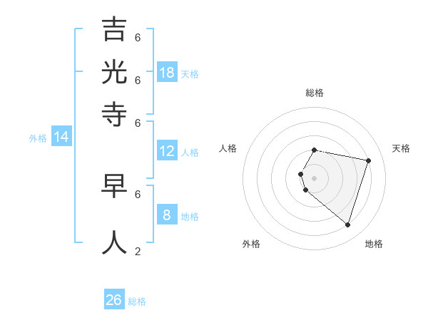 吉光寺 早人さんの総格は26画の2点!