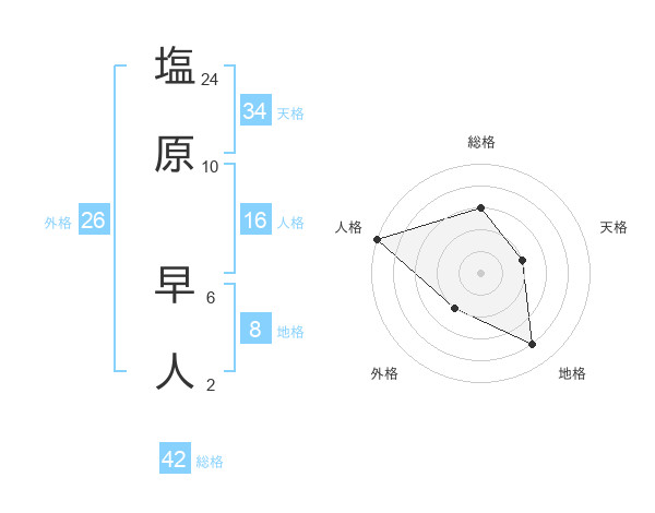 塩原 早人さんの総格は42画の3点!