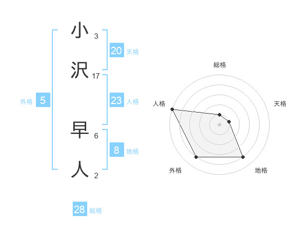 小沢 早人さんの天格は20画の1点!