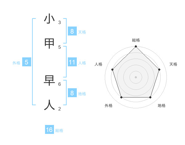 小甲 早人さんの総格は16画の5点!