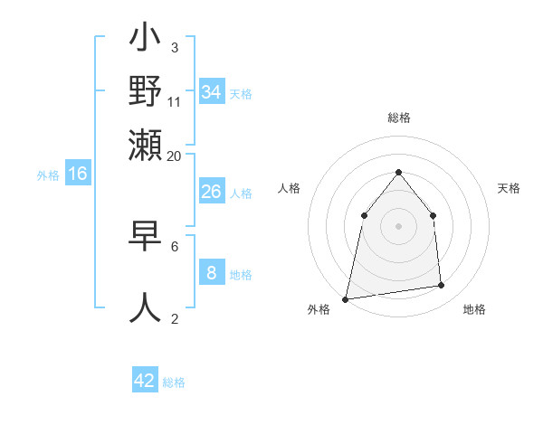 小野瀬 早人さんを姓名の画数から五運を鑑定