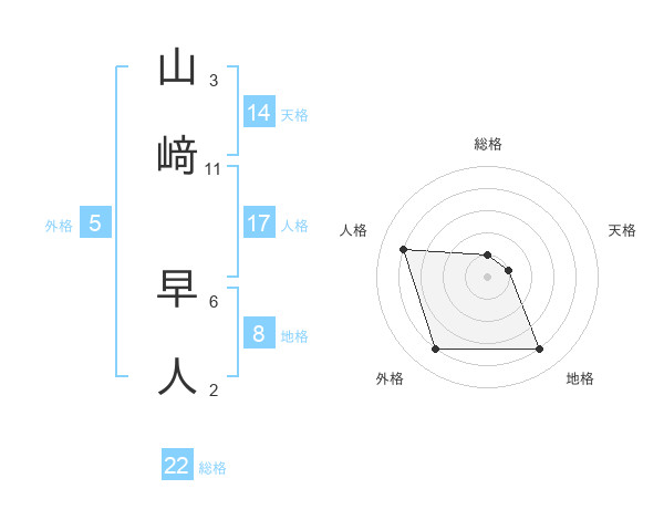 山﨑 早人さんの総格は22画の1点!