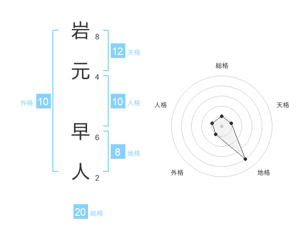 岩元 早人さんの地格は8画の4点!