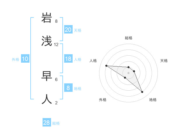 岩浅 早人さんの総格は28画の1点!