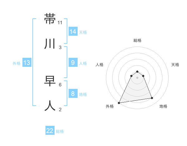 帯川 早人さんの総格は22画の1点!
