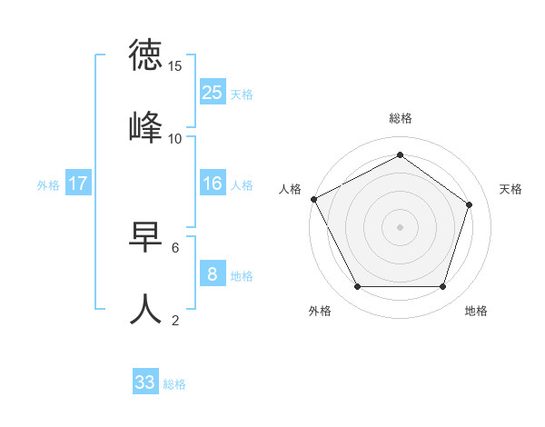 徳峰 早人さんの天格は25画の4点!