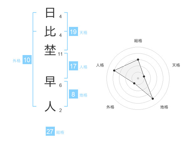 日比埜 早人さんの総格は27画の3点!