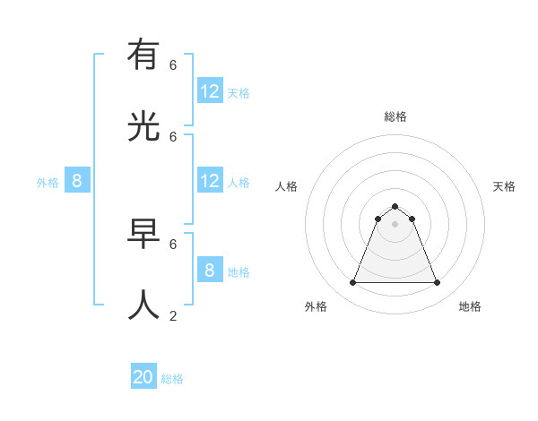 有光 早人さんの外格は8画の4点!