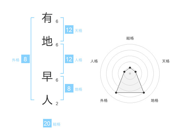有地 早人さんの外格は8画の4点!