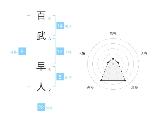 百武 早人さんの総格は22画の1点!