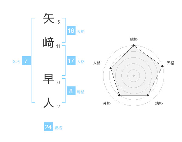 矢﨑 早人さんの天格は16画の5点!