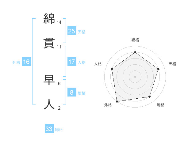 綿貫 早人さんの総格は33画の4点!