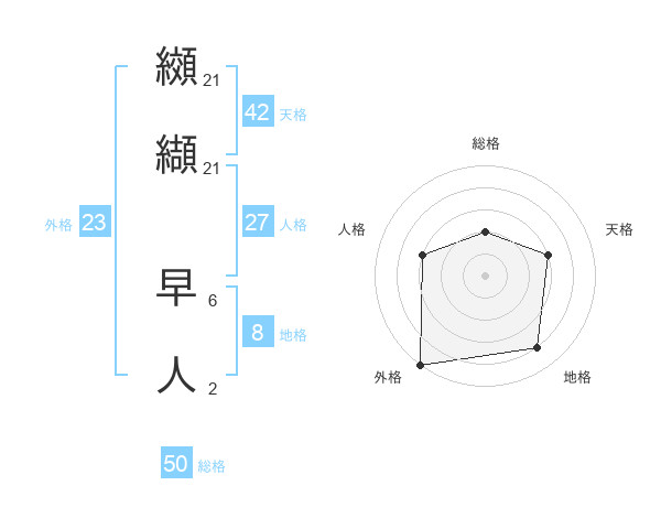 纐纈 早人さんを姓名の画数から五運を鑑定