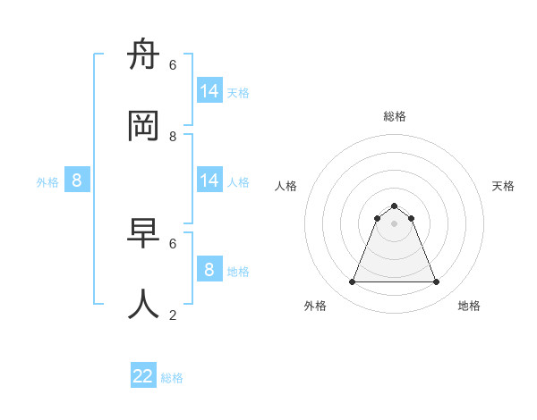 舟岡 早人さんを姓名の画数から五運を鑑定